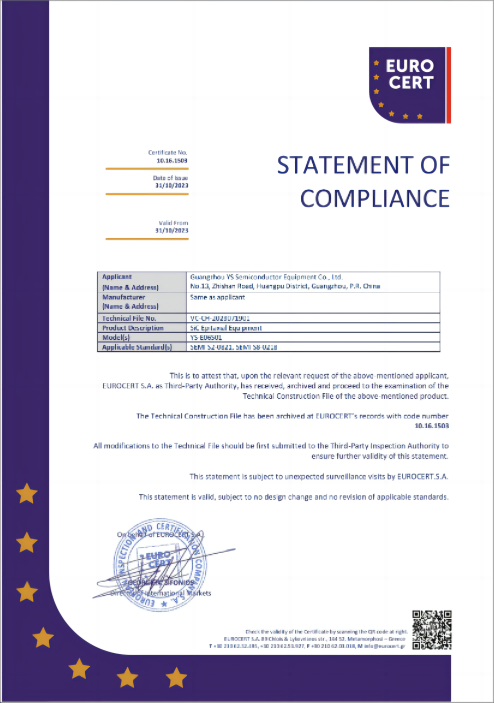 在半導(dǎo)體領(lǐng)域,對于大部分半導(dǎo)體相關(guān)設(shè)備全球采購商都會要求持有SEMI S2國際認(rèn)證。獲得此項認(rèn)證是廣州粵升持續(xù)追求以客戶需求為中心、不斷提升安全性能和穩(wěn)定性的結(jié)果,是廣州粵升對客戶承諾的證明,也是研發(fā)實力和產(chǎn)品可靠性的有力證明。